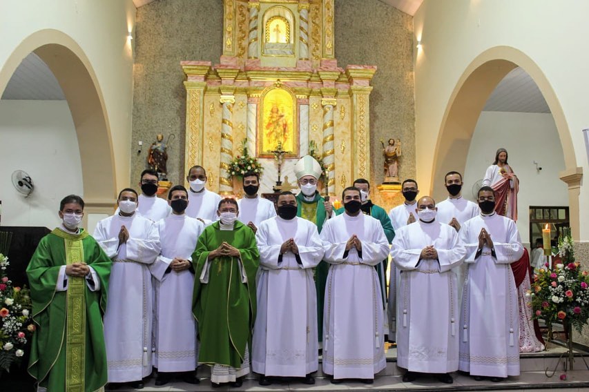 Na tarde do último sábado, 19 de junho de 2021, seminaristas da Diocese de Nazaré receberam o ministério de acólito. A celebração eucarística aconteceu, às 16h, na Igreja Matriz de Sant’Ana, em Vicência-PE, e foi presidida pelo bispo diocesano, Dom Francisco de Assis Dantas de Lucena (confira aqui). Participaram, também, da eucaristia os padres José Marcos (pároco), Marisaldo Barbosa (reitor do Seminário Maior), Marcos Antônio (vice-reitor do Seminário Maior), André Carlos (cerimoniário diocesano) e mais alguns sacerdotes do clero diocesano. A cerimônia obedeceu a todos os protocolos de segurança necessários: número reduzido de fiéis, distanciamento, uso obrigatório de máscara e higienização.